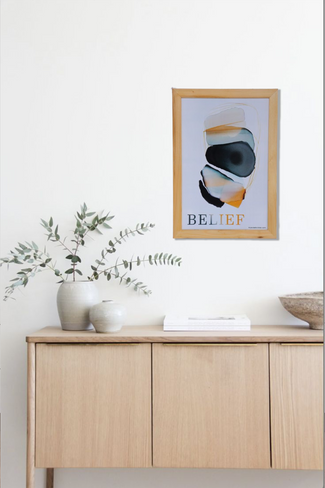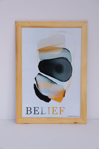 A beautifully designed portrait frame featuring an inspiring graphic painting with the word "Belief" boldly displayed at the top. This frame serves as a powerful reminder to have faith in oneself and the journey ahead. Perfect for gifting or adding a touch of motivation and creativity to any space.