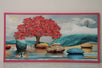 A mesmerizing painting of a radiant red-leaved tree standing gracefully on the riverbank, its beauty mirrored in the shimmering waters below. The river, adorned with colorful, shiny stones, adds a magical touch, making this artwork a stunning masterpiece for any space!