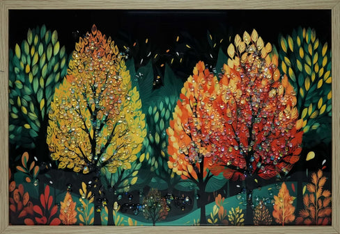 Crystal Glass Wall Frame – Colorful Autumn Trees Art