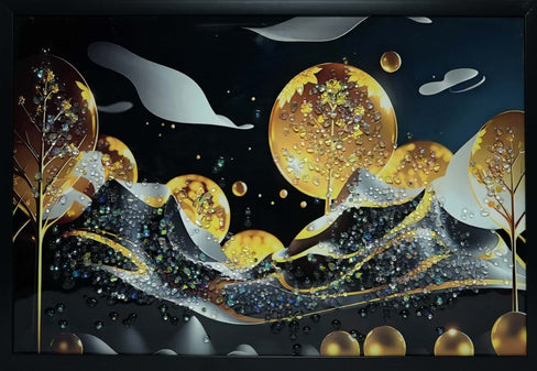 Crystal Glass Wall Frame with Golden Abstract Nature Art