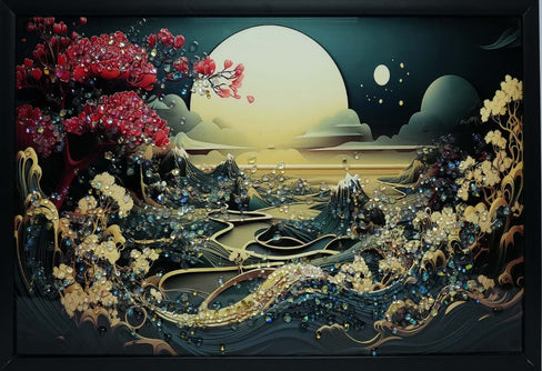 Crystal Glass Wall Frame with Golden Moon Landscape Art
