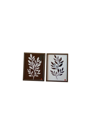A stunning blend of contrast and nature, this set of two frames showcases bold and elegant leaf patterns in striking color combinations. Perfect for adding a modern yet organic touch to any space.