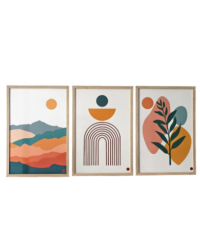 This modern wall art frame set displays artistic landscape shapes, curved line patterns, and leaf-inspired designs in warm, earthy tones that enhance wall beauty while creating a calm, stylish, and balanced look for living rooms, bedrooms, or office spaces.