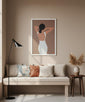 This modern art wall frame showcases a graceful woman silhouette in soft earthy tones creating a calm, expressive look that adds elegance and depth to living rooms, bedrooms, dressing areas, or studio spaces with a refined artistic touch.