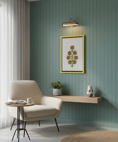 Enhance your home decor with this elegant Floral Vine Madhubani Wall Art Frame, inspired by the timeless beauty of Indian folk art. The artwork features a symmetrical floral vine pattern created in classic Madhubani style, symbolizing growth, positivity, and harmony. The bright yellow frame adds a cheerful contrast, making the design stand out beautifully on any wall.