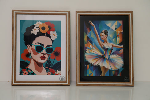 A stunning set of two frames capturing contrasting yet captivating sides of femininity. One frame showcases a bold and stylish woman wearing sunglasses, exuding confidence, while the other features an enchanting fairy-like woman lost in a graceful dance. Together, these artworks create a perfect balance of modern elegance and ethereal beauty, making them an ideal addition to any space.