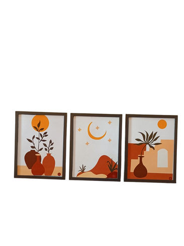 Radiating warmth and charm, this set of three frames features stunning sunflower and pot patterns in a vibrant orange color combination.