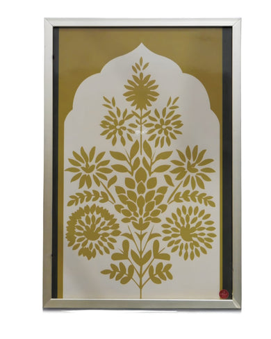 Add a touch of royal elegance to your walls with this Golden Floral Arch Madhubani wall art frame. Inspired by traditional Madhubani floral motifs, this artwork features rich golden tones and a graceful arch design that brings cultural charm to any space.