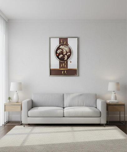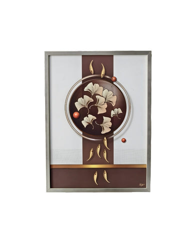 This golden art frame features an elegant floral composition with soft metallic tones and balanced detailing. The refined design brings a sense of calm and sophistication, making it an ideal décor choice for modern, minimal, and luxury interior spaces.