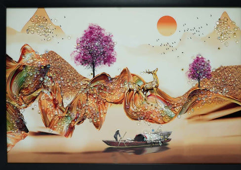 Crafted using high-definition crystal glass, the frame reflects light beautifully, adding rich depth and a premium finish. Perfect for living rooms, offices, or statement interiors, this wall frame doesn’t just decorate your space — it tells a story of harmony between nature and art.