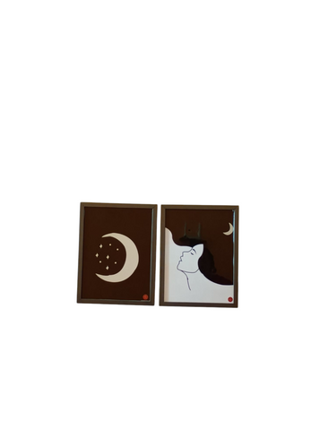 Embrace the calm and mystique of the night with this elegant set of two frames, featuring a delicate crescent moon pattern. A perfect addition to bring a touch of celestial beauty to your space.