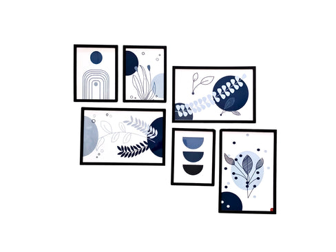 Refresh your walls with this elegant six-frame gallery kit featuring modern botanical and abstract designs in calming blue tones. The balanced layout and coordinated artwork create a clean, sophisticated focal point for any space.