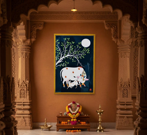 Sacred Madhubani Kamadhenu Art Frame