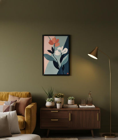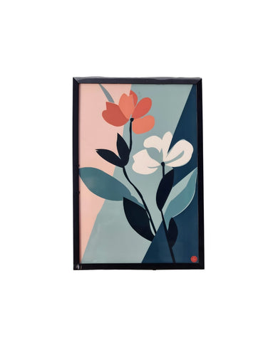 This modern art wall frame features graceful floral shapes with soothing pastel and deep tones, creating a calm and stylish look that beautifully enhances living rooms, bedrooms, offices, or any space needing elegant wall decor.