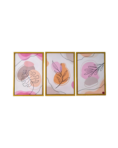 This modern wall art frame set features delicate leaf illustrations with flowing line details and soft pastel shades that add elegance and calmness to living rooms, bedrooms, or office walls while enhancing overall interior decor effortlessly.