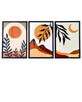 This modern art wall frame set features sun, moon, and nature-inspired shapes in warm, earthy tones, creating a calm, balanced look that enhances living rooms, bedrooms, or hallways with a stylish and peaceful wall decor appeal.