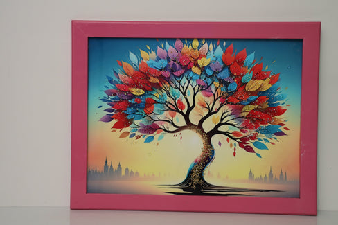 A magnificent giant tree bursting with a dazzling array of colorful leaves, creating a mesmerizing display of nature’s beauty. This vibrant masterpiece radiates life, energy, and artistic charm, making it a stunning centerpiece for any space!