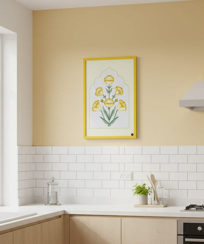 This beautiful Madhubani floral wall art embodies simplicity, purity, and traditional Indian values. Hand-inspired floral patterns with soothing yellow tones bring a calm, elegant vibe to your space, making it perfect for both modern and ethnic home decor.