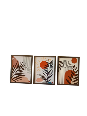 A captivating blend of uniqueness and harmony, this set of three frames features distinct patterns on each piece, creating a modern and artistic statement for any space.