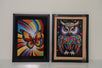 A striking set of two frames bursting with color and vibrancy. One frame features a majestic owl adorned in a spectrum of hues, symbolizing wisdom and mystery, while the other showcases a breathtaking butterfly with radiant, multicolored wings, representing transformation and beauty. Together, they create a mesmerizing fusion of nature’s brilliance, perfect for any space seeking a bold and artistic touch.